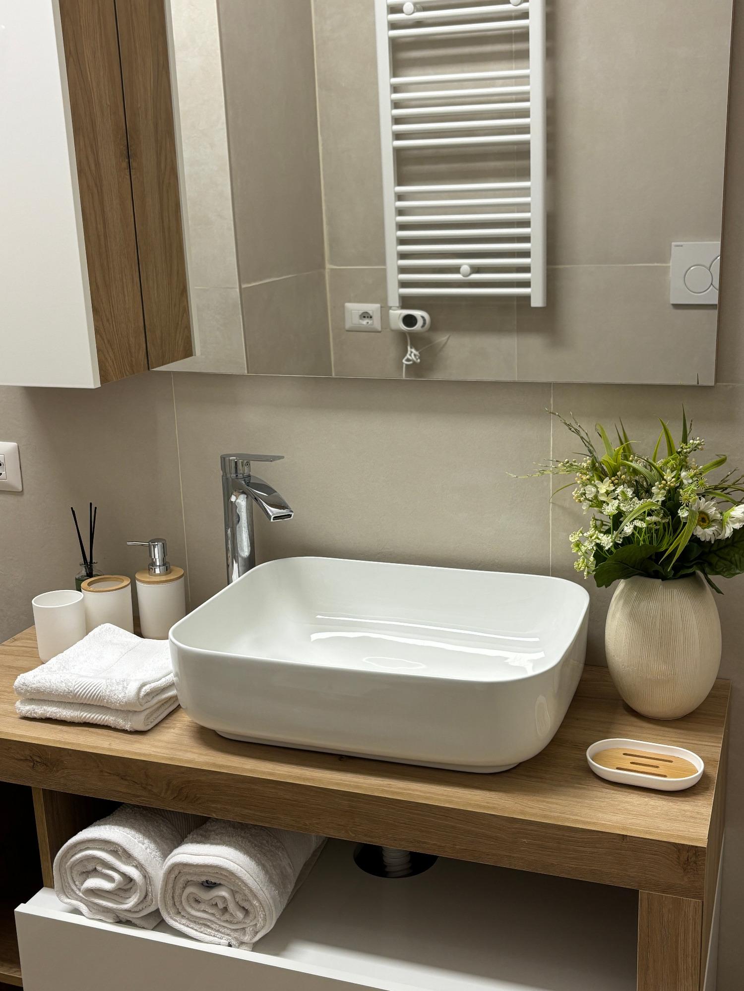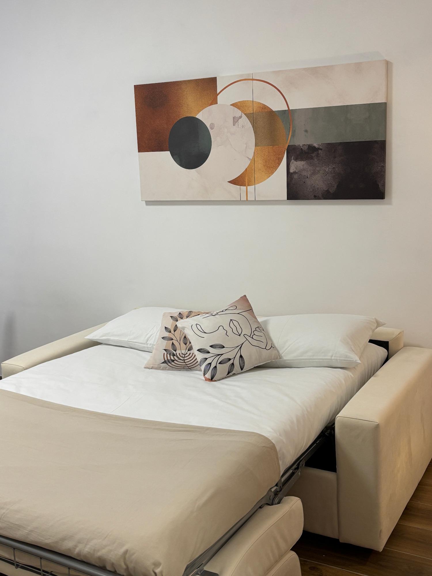 L’appartamento dispone di una camera da letto insonorizzata, un soggiorno con divano letto, un angolo cottura completo di utensili, frigorifero, microonde e macchina del caffè, un bagno con doccia e bidet, oltre a un balcone con lavatrice. Sono inclusi asciugamani, lenzuola, asciugacapelli e Wi-Fi, per offrire agli ospiti tutto ciò che serve per un soggiorno rilassante e indipendente.